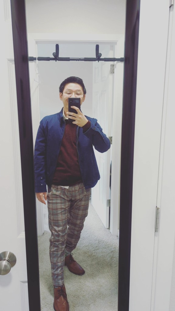 All of which brings me to an ironic revelation: today’s outfit is what I wish I could have worn when I was back in school. It’s the pants I couldn’t afford back when I was picking used jeans off the floor of Garment District; the shoes I saw some of my wealthier peers casually flaunting on their way to frat parties; the sports jacket I told myself I’d wear one day when I was confident enough to pull it off. I wonder who that version of myself – the one staring back at me in the mirror – might have grown to become. I wonder if they would have been happier in college than I was.