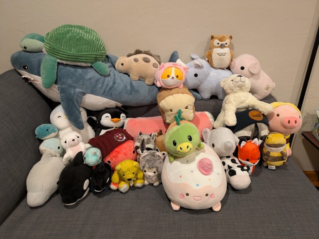 I’m surprised that it’s now, at the age of 29, that I’ve embraced my love of stuffed animals. When I was younger, I had no toys or animals to call friends–I mostly admired cute things from a distance, knowing I didn’t have the money or space to give them the home they deserved. Part of me yearned for that space to play and imagine, even as part of me wanted to reject it as childish. It feels joyous, and even healing, to come full-circle and realize I can now fully embrace these desires and share them with people I love.