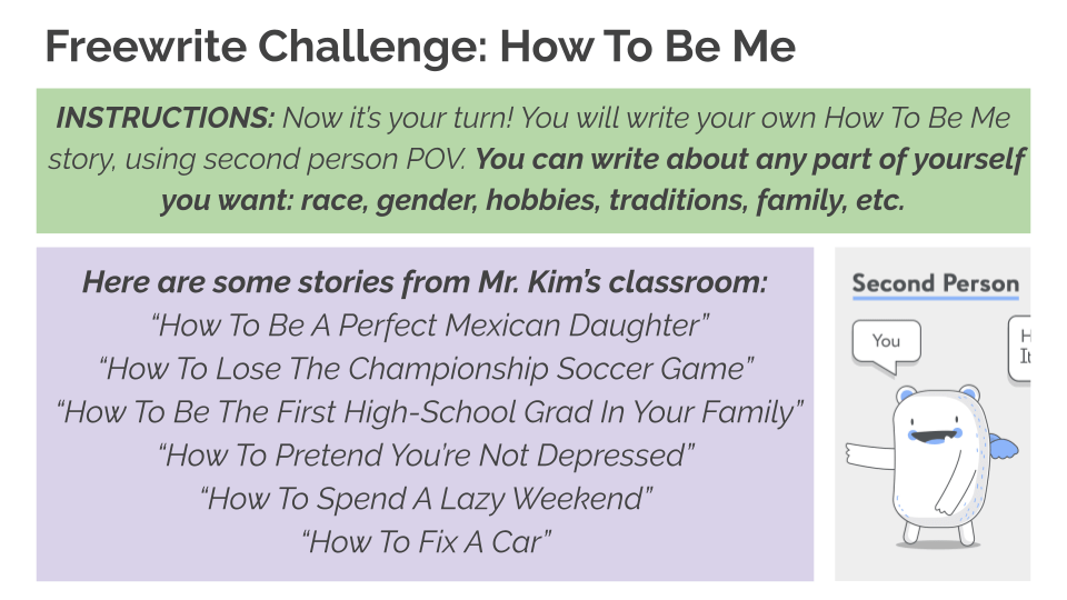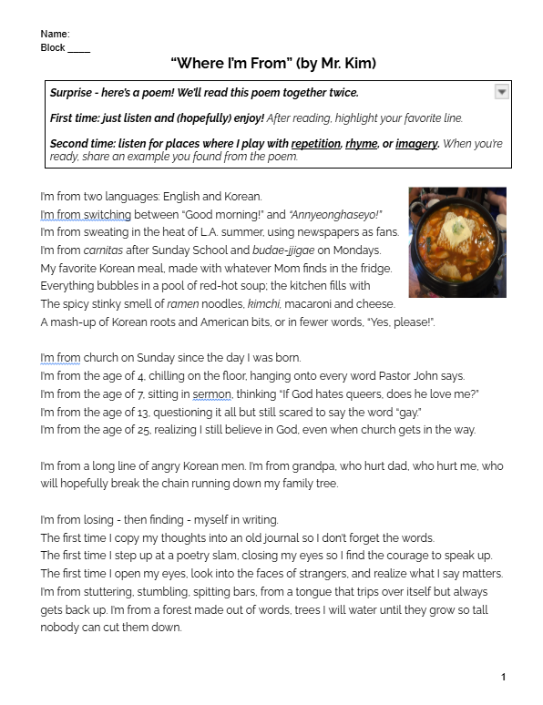 Mr. Kim’s “Where I’m From” poem (modeling vulnerability and building community)