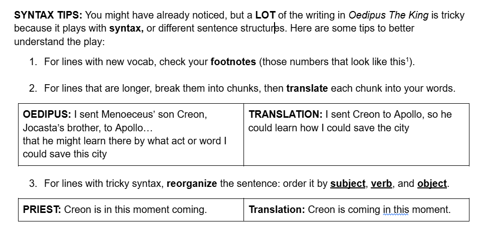 Grammar Lesson: Syntax (helping students access rigorous, grade-level texts)