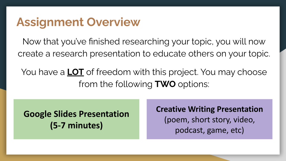Research Project (offering students multiple ways to show mastery)